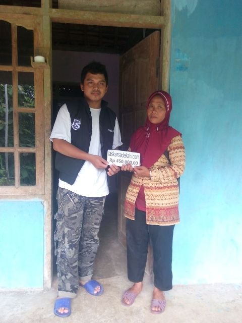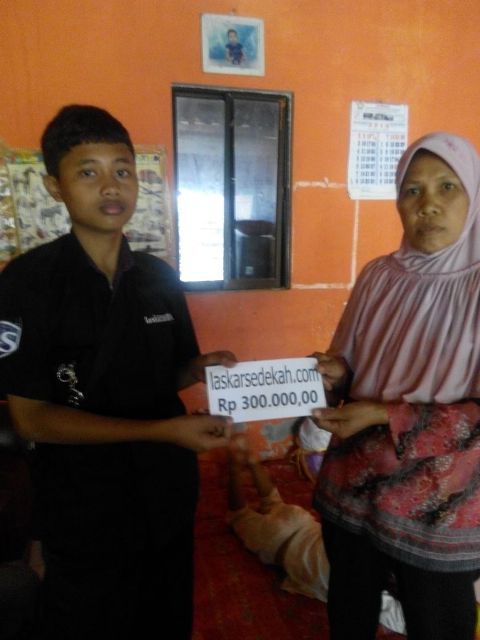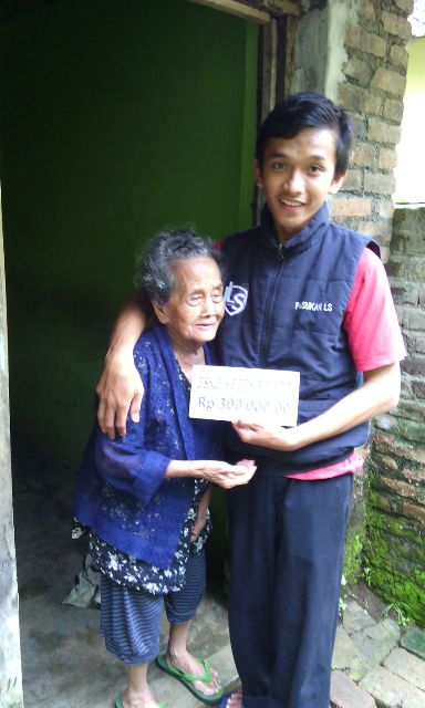 Ibu Suyamti. Kesehariannya beliau mencari rumput untuk meyambung hidup, dan anaknya diasuh oleh tetangganya yang terketuk hatinya untuk membatunya. Alamat di dusun Banyumeneng 3 Panggang Gunung Kidul Yogyakarta. Penyampaian sedekah diwakilkan oleh warga setempat.
