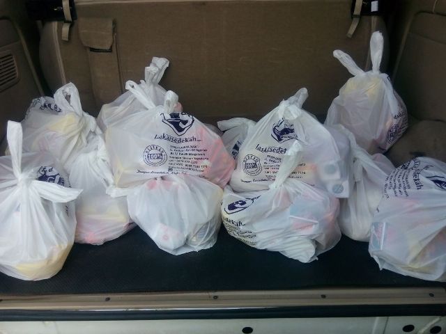 Eksekusi sedekah 15 paket sembako untuk warga yatim, piatu, dhuafa, janda, dan duda kurang mampu di Cibuk Kidul Margoluwih Seyegan Sleman Yogyakarta