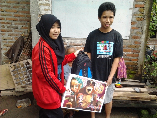 - Penyampaian paket pendidikan untuk Adik Miko. Alamat Kulon Progo Yogyakarta. Penyerahan diwakilkan oleh ibundanya.