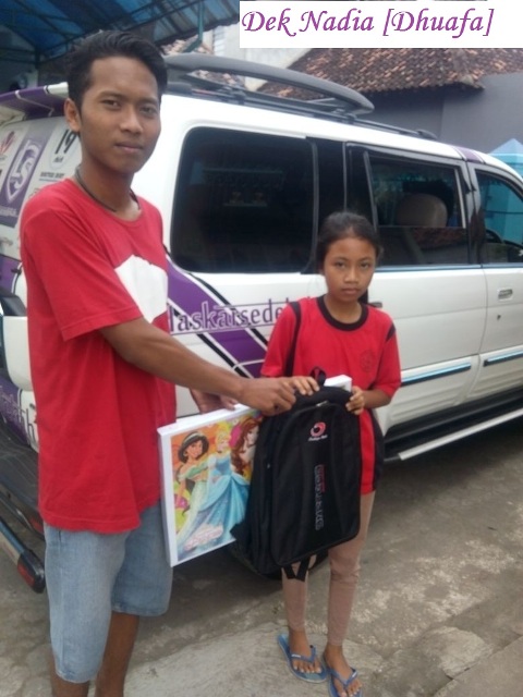Alhamdulillah, sedekah paket pendidikan merupakan program terbaru dari Laskar Sedekah di awal tahun 2015 ini. Setiap paketnya senilai Rp. 150.000,00 yang akan kami wujudkan dalam bentuk peralatan sekolah, seperti: tas sekolah, meja lipat, buku tulis, pena, pensil, rautan, dan penggaris. Sedekah paket pendidikan ini kami tujukan kepada anak-anak sekolah yang yatim/piatu/dhuafa di sekitaran kota Yogyakarta. Berikut beberapa dokumentasi penyaluran paket pendidikan untuk anak-anak dhuafa yang kurang mampu di dusun Ngentak Margoluwih Seyegan Sleman Yogyakarta. Foto-foto dokumentasi ini sebagai wujud laporan kami kepada para pendekar sedekah.