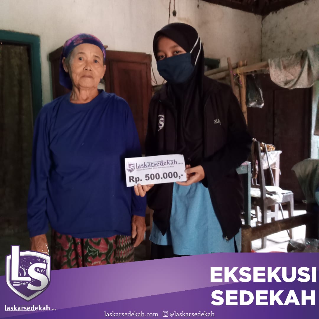 Beliau menangis terharu saat kami berkunjung ke rumahnya di Temanggal 03/01. Sendirian di rumah, sehari-hari membuat kerajinan tas dari rafia. Kepada mereka kami sampaikan sedekah Rp500.000,- untuk membantu penghidupannya sehari-hari.