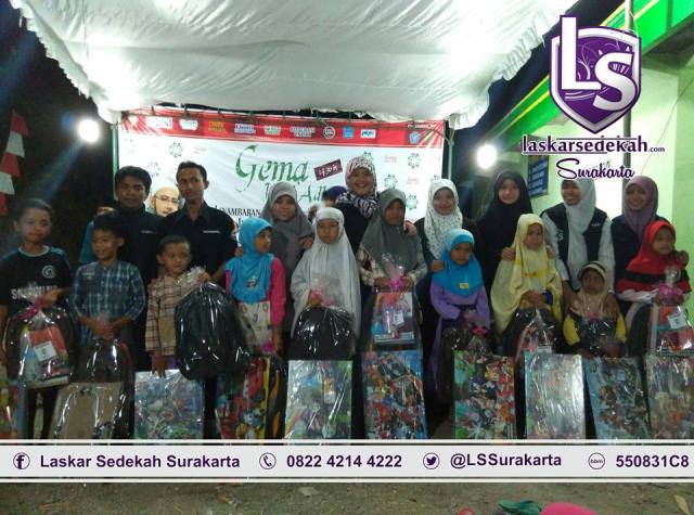 Penyerahan Paket Pendidikan kepada Anak Yatim Piatu di Dk. Sangiran, Desa Krendowahono, Kecamatan Gondangrejo, Karanganyar. Paket Pendidikan diserahkan dalam acara Pengajian Gema Idul Adha yang diselenggarakan UKMI Universitas Slamet Riyadi Surakarta.