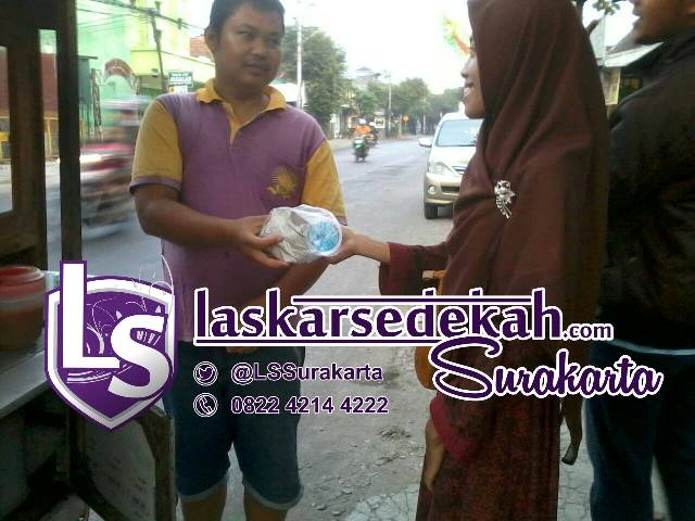 Fajar belum lagi merekah sempurna di sayap langit. Kejora masih tampak menyala di kejauhan. Di saat kebanyakan orang masih terlelap dalam tidurnya, pasukan mulai mempersiapkan diri untuk menunaikan agenda rutin “Tebar Nasi Bungkus”. Kali ini agenda tebar 100 nasi bungkus dilaksanakan di daerah Masjid Tegal Sari, Surakarta pukul 05.00 WIB.